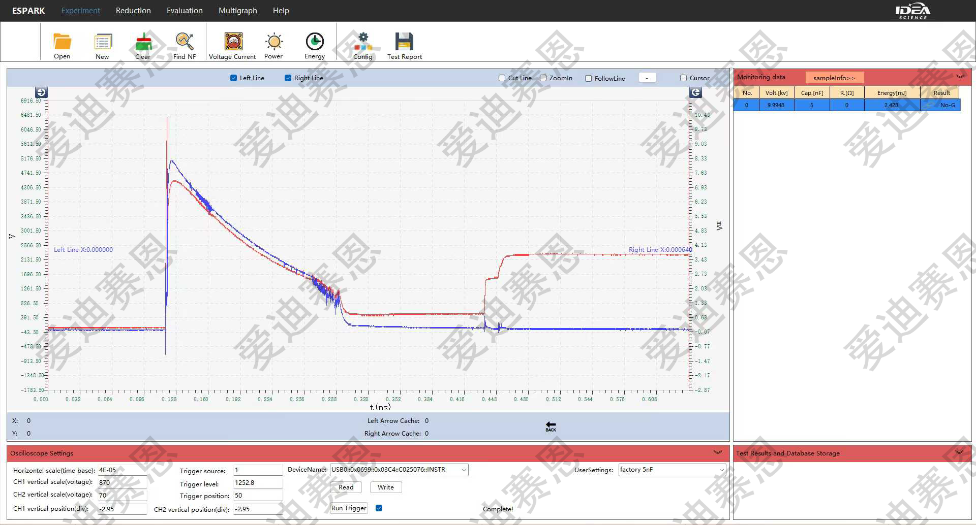 这张看似简单的阻尼和振荡放电曲线,是我们用E-SPARK测试含能材料静电火花感度的核心。它记录了高压静电在瞬间释放时,电压与电流的精确衰减过程。通过积分计算曲线下的面积,我们就能精准捕捉到那"火花一闪"的真实能量——这正是判断火药、推进剂等含能材料在生产、运输中是否安全可靠的"金标准"!